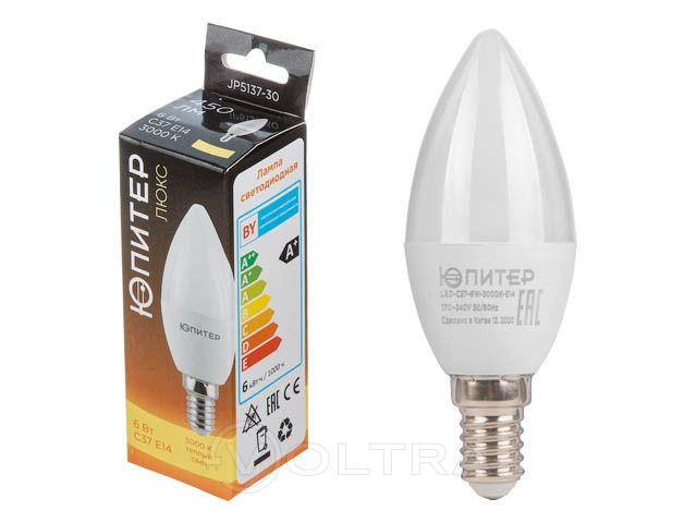 Лампа светодиодная C37 СВЕЧА 7,5 Вт 170-240В E14 3000К ЮПИТЕР, арт.JP5083-07
