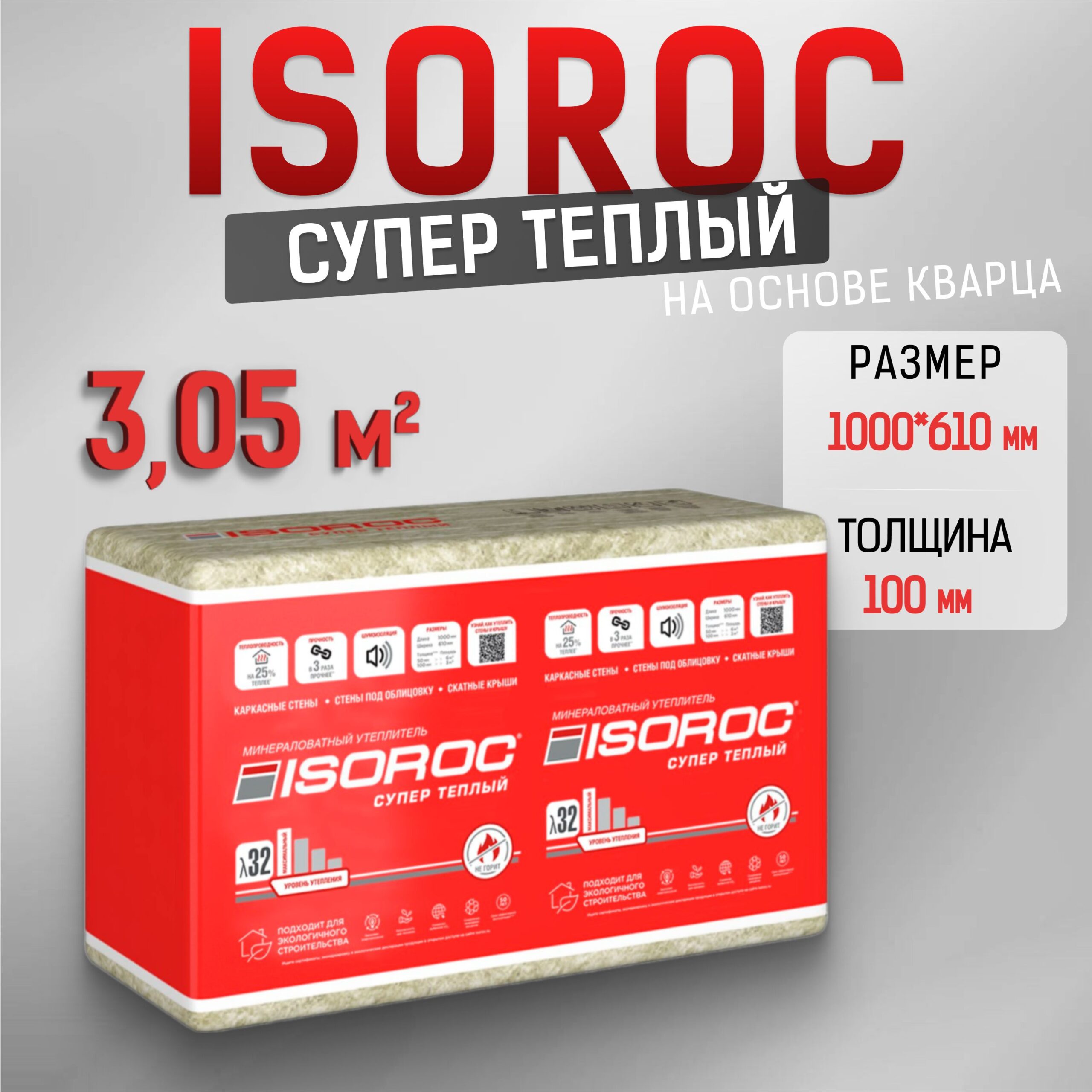 ISOROC Super Warm 100/610/1000(плита теплоизоляционная) 3,05м2 РФ